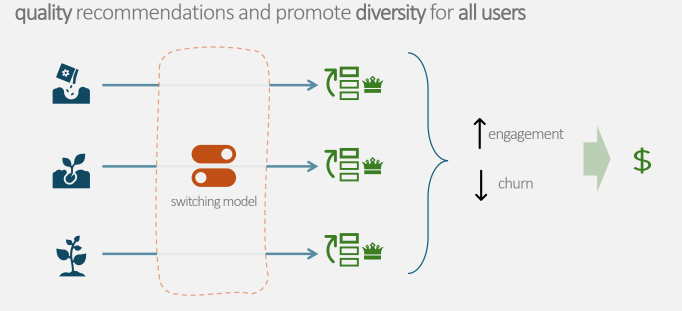 - Balanced exploration and personalization, reducing churn and increasing session time.