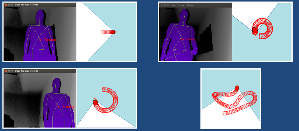This tracking module provided the input for the navigation system, enabling the robot to follow a designated human in real time with an accuracy of ~10% of the desired following distance