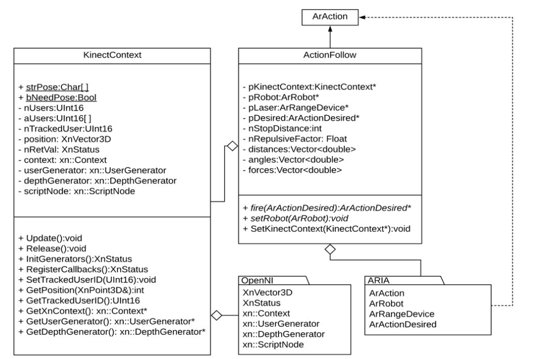 - Robot Control: low-level motor commands, sensor data handling, ARIA actions.