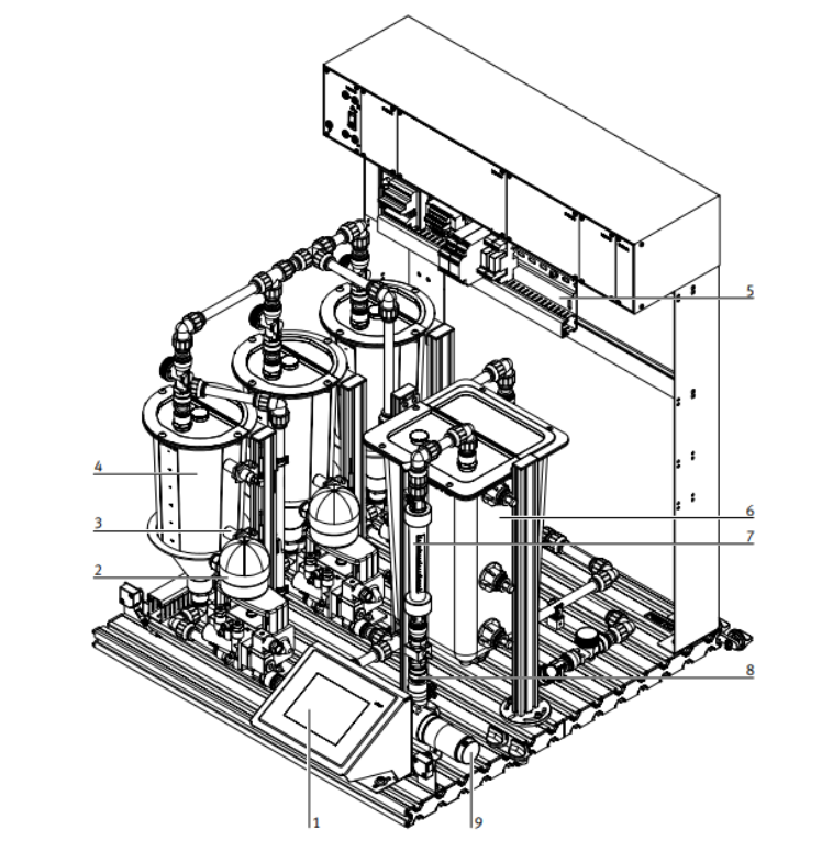 - Displayed process state in real time (filling, mixing, recirculation, error conditions).
